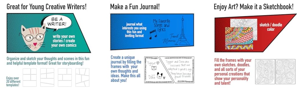 The comic format is a great way to encourage and inspire writing or journaling - anyone from someone eager and chomping at the bit to tell their stories to children who may be reluctant to write to people of all ages who find solace and relaxation in jotting down their thoughts.