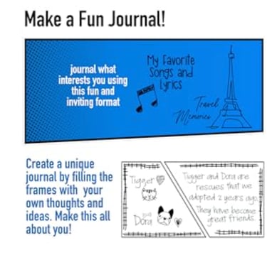 This could be an amazingly interesting book for journaling of all sorts! Fill the panels with your thoughts, experiences, memories in a format that is inviting with fun frames to fill.